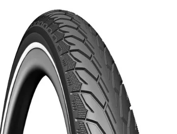 | városi/trekking kerékpár külső gumi, amelyet elsősorban aszfaltos utakra és mindennapi használatra terveztek. Defektvédelemként a futófelület alatt egy min. 3 mm vastag Stop Thorn Advanced gumiszalag található, ami hatékonyabban csökkenti a szúrásos és vágásos defektek esélyét. Emellett a gumi fényvisszaverő oldalsávval rendelkezik a jobb láthatóságért esti tekeréseknél, és viszonylag alacsony gördülési ellenállást biztosít a gördülékeny haladáshoz. | |