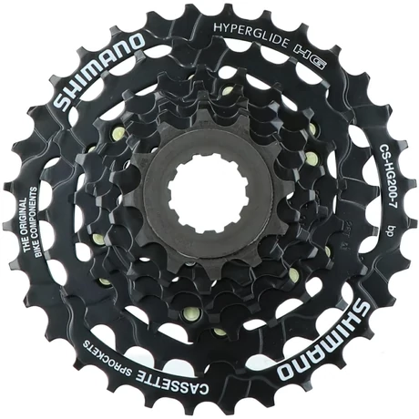 Shimano Acera CS-HG200-7 kazettás lánckeréksor, 7s, fekete, 12-32T Belépő kategóriás kazettás lánckeréksor hobbi MTB kerékpárokra. |